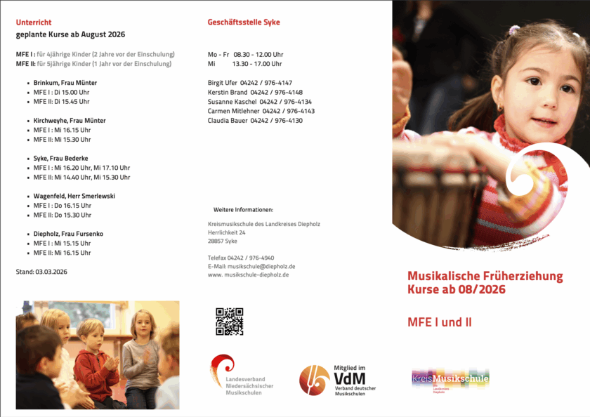 Unsere Welt ist voll von Geräuschen und Klängen. Kinder sind neugierig und möchten diese Klangwelt erlauschen und erfahren. Jedes Kind besitzt die Fähigkeit, Geräusche und Musik zu erleben und ist in diesem Sinne also auch musikalisch. Deswegen bietet die Musikschule die MFE an.